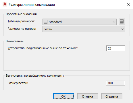 2. В разделе "Проектные значения" убедитесь в том, что для параметра "Размеры на основе:" выбран вариант "Ответвление".