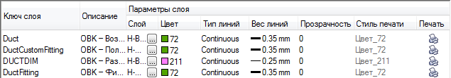 Ключи слоев для воздуховодов и фитингов воздуховодов