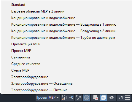 Наряду с возможностью использовать в чертеже ортогональную и изометрическую проекции программа инструментарий AutoCAD MEP 2027 содержит параметры отображения, определяющие, как объекты будут выглядеть на чертеже. Экранные представления определяют, как объекты выглядят в различных видах. Конфигурации экранного представления представляют собой группы экранных представлений, предназначенные для выполнения конкретных задач. Например, можно изменить 1-линейную конфигурацию экранного представления на 2-линейную. Также можно включить конфигурацию экранного представления, которая будет ориентирована на конкретные системы. Например, в конфигурации, использующей для показа механических систем определенные цвета и типы линий, все-таки отображаются все остальные типы систем.