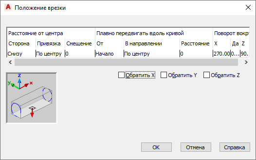 - Указание нового значения угла поворота или отражение фитинга относительно оси X, Y или Z