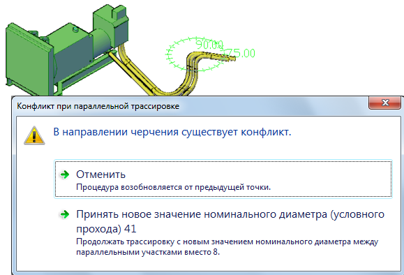- Согласитесь на выполнение предложенного действия. При продолжении трассировки между сегментами короба будут сохранены текущие настройки.