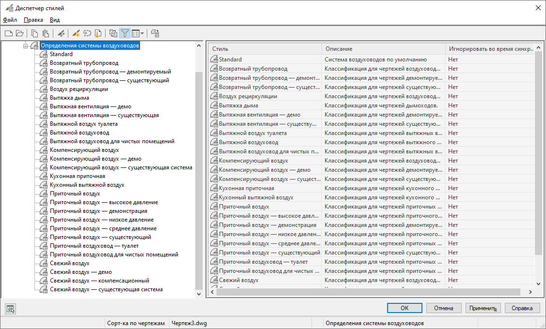 Загрузка систем осуществляется через шаблоны инструментарий AutoCAD MEP 2027. Если ни один из шаблонов инструментарий AutoCAD MEP 2027 не используется, можно импортировать определения систем из других чертежей с помощью Диспетчера стилей. Дополнительные определения систем содержатся в файле System Definitions.dwg, расположенном во вложенной папке следующей папки: \ProgramData\Autodesk\MEP <версия>\rus\Styles.