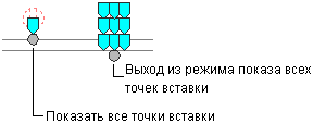 | другой точки на этом устройстве или панели, | щелкните на ручке "Показать все точки вставки" и выберите нужную ручку. |