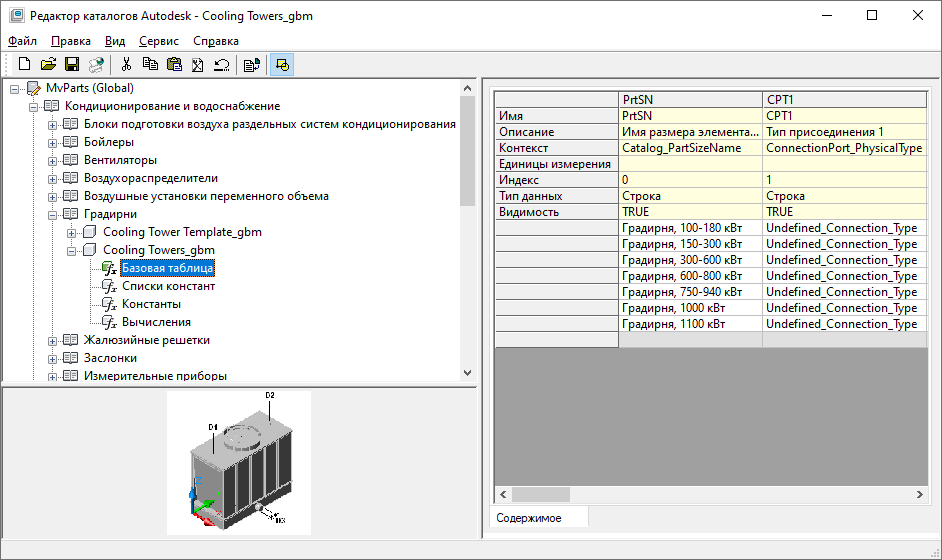 Ниже приведен пример каталога мультивидовых элементов трубопровода, имеющегося в разделе механической системы.