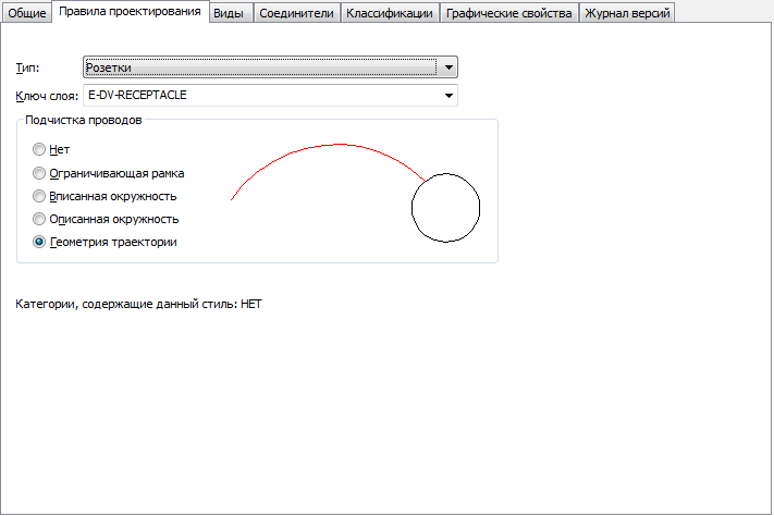 Свойства "Тип", "Ключ слоя " и "Маскирование", предусмотренные в сценарии, отображаются на вкладке "Общие" диалогового окна "Диспетчер стилей". На этой вкладке свойство "Маскирование" называется "Подчистка проводов".