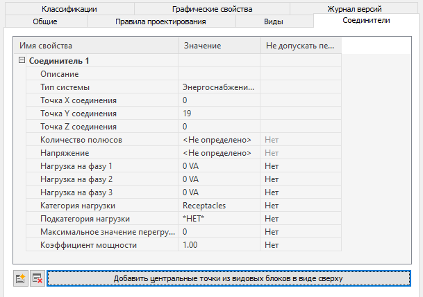 Свойства соединителя, предусмотренные в сценарии преобразования устройств, отображаются на вкладке "Соединители" диалогового окна "Диспетчер стилей". На этой вкладке свойство "Тип соединителя" называется "Тип системы".