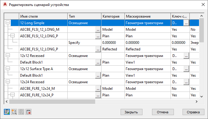 Свойство "Категория", предусмотренное в сценарии, не отображается в диалоговом окне "Диспетчер стилей". Категории устройств представляют собой способ группировки устройств (стилей устройств) в таблице "Выбор устройства" для упрощения поиска доступных устройств. Создание категорий устройств и другие операции с ними выполняются непосредственно в таблице. Дополнительные сведения см. в разделе «Создание категорий в инструментарий AutoCAD MEP 2027».