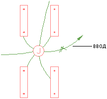 Ввод — это провод, который графически представляет проводное соединение цепи с центром, действующим как пункт распределения электропитания. Как правило, это панель. Соединять ввод с панелью не нужно. Обычной практикой является расположение ввода в направлении панели.