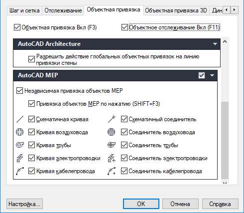 Эту процедуру используют для включения и отключения привязок инструментарий AutoCAD MEP 2027.