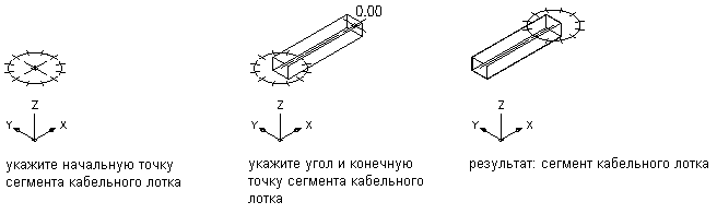 Отдельные сегменты образуют участок кабельного лотка или короба. Для построения сегмента вначале указывают его свойства, а затем указывают точки на чертеже.