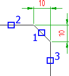 Первая исходная точка выносной линии — определение первой точки, определяющей параллельный линейный размер (1 на рисунке).