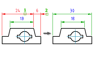 Эта команда применяется только к линейным и угловым (3 точки или 2 линии) размерам.
