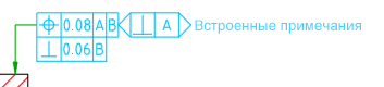Примечания снизу Задание текста, который должен быть отображен снизу от допусков формы и расположения. В области рисования примечания и рамка допуска перемещаются как единый объект. |