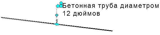 Квадратная ручка используется на метках линий, дуг и полилиний для перетаскивания метки с объекта. Для скольжения метки вдоль объекта используется ромбовидная ручка. При скольжении метки вдоль полилинии от одного типа сегмента к другому (например от линии к кривой) изменяется стиль метки.