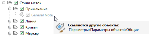 В этом примере общие настройки элемента ссылаются на стиль общих примечаний, поэтому флажок «Общие примечания» нельзя снять.