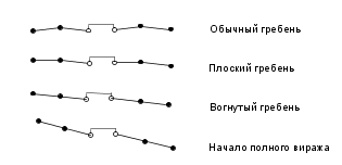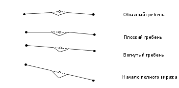 На дорогах с разделительной полосой обычно используется два варианта виражей для каждой стороны разделенного дорожного полотна.