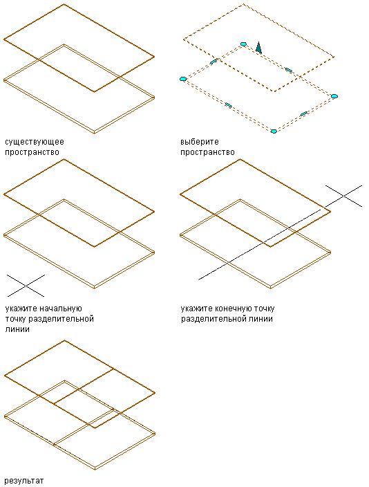 Можно разделить линию или содержащий линию блок на две (или более) частей по заданной разделительной линии. После этого можно отдельно выбирать части, расположенные по разные стороны разделительной линии. Если в результате этой операции объект с замкнутой границей разделен на две части, для обеих частей восстанавливается замкнутая граница. При разделении полилинии, имеющей форму зигзага, в направлении ее длины создается несколько сегментов, которые можно выбирать по отдельности.