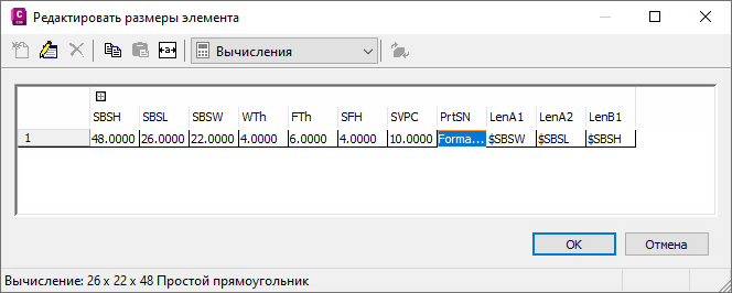 Прим.: Редактирование установленных в модели вычисляемых значений не может быть выполнено в диалоговом окне "Редактировать размеры элемента". Чтобы изменить эти значения, следует выполнить редактирование модели.