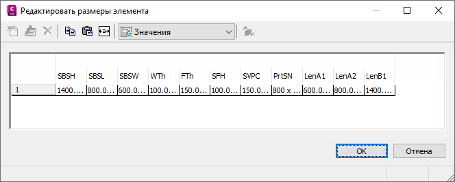Эту процедуру используют для добавления в модель отдельных размеров элемента. Отдельные размеры элемента создают путем добавления значений параметров. Значения могут быть представлены в виде списка или таблицы значений, в виде константы или в виде вычисляемого значения.