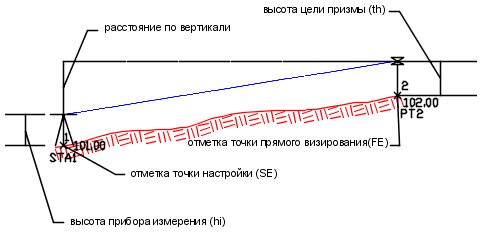 Расстояние по вертикали от центра области до центра EDM. В Autodesk Civil 3D данное значение используется для вычисления расстояния.