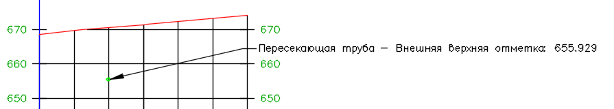 При перемещении пересекающей напорной трубы в другую отметку метки будут обновлены в соответствии с новой информацией.