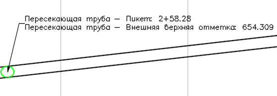 При перемещении пересекающей напорной трубы к следующему пикету по ходу трассы к меткам будет добавлена информация о новом пикете и новой отметке.