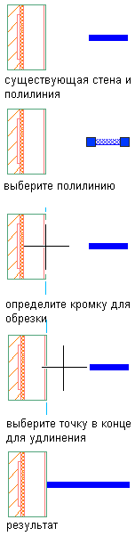 Можно удлинить одну или несколько линий, незамкнутых полилиний или дуг точно до края прямолинейного или криволинейного сегмента любого объекта либо до воображаемого продолжения этого сегмента.