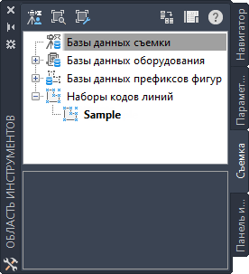 Управление данными съемки выполняется на вкладке Съемка окна Область инструментов, а не на вкладке Навигатор, что характерно для других объектов.