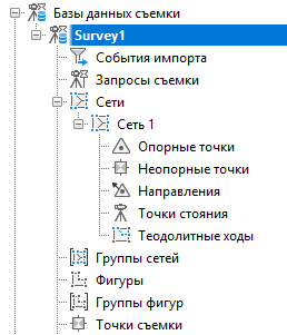 Дерево вкладки Съемка служит для доступа к данным и параметрам съемки:
