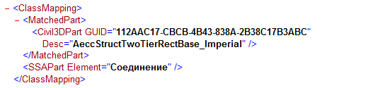 Для элемента Autodesk Civil 3D должен быть указан GUID (идентификатор элемента), а затем описание (используется для облегчения считывания файла, но фактически в сопоставлении не участвует).