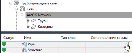 Настройка сопоставления схемы трубопроводной сети после добавления в чертеж данных ArcGIS