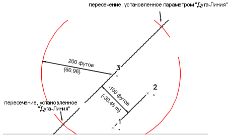 Вычисление пересечения дуги и линии с помощью языка команд модуля "Геодезия"