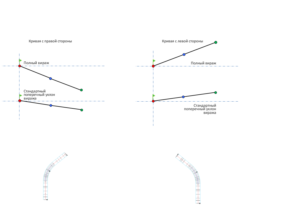 Пояснения к диаграммам виража приводятся в разделе "Методы точки вращения для оси вращения виража".