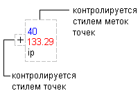 Стиль точек определяет, то как выглядит знак точки, а стиль метки точки определяет, как выглядит метка точки.