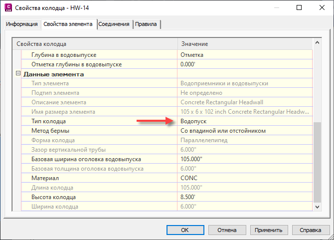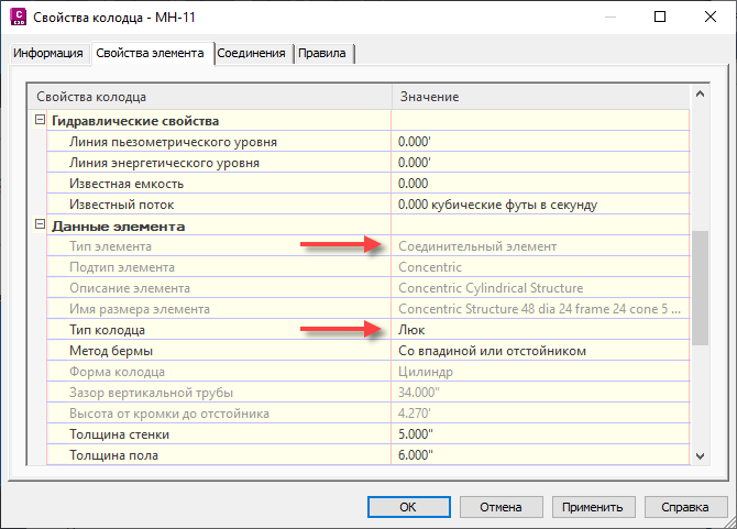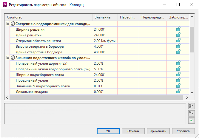 Параметры по умолчанию для колодцев можно указать в диалоговом окне Редактировать параметры объекта — Колодец.
