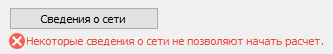 Если выбранный тип анализа нельзя выполнить, на странице «Общие» диалогового окна «Анализ гравиметрических сетей» появится сообщение об ошибке под кнопкой «Сведения о сети».