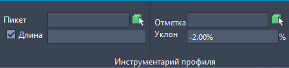 С помощью прозрачной команды «Инструментарий профиля» можно задать значения пикета, отметки, уклона или длины при создании и редактировании профилей.