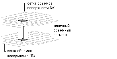 Сетчатая поверхность для вычисления объема - это дифференциальная сетчатая поверхность, формируемая на основе базовой поверхности и поверхности сравнения, а также параметров шага и ориентации сетки.