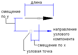 Определяет расстояние смещения между серединой стрелки направления и элементом привязки в направлении по оси Х.