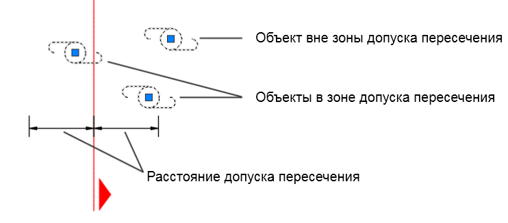 Опции пересеченияЗадает расстояние, в пределах которого должен находиться объект от оси сечения, чтобы отображаться в качестве пересечения.
