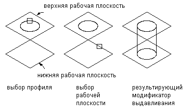 Термин "модификатор" является общим названием любой операции, которая направлена на изменение объектов модели. После создания профилей можно применить модификаторы для выдавливания, добавления или вычитания объектов и для сдвига профиля вдоль какой-либо траектории. Модификаторы можно использовать также для создания секущих плоскостей и переходных объектов.