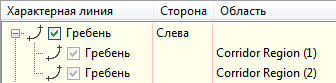 Если при выборе параметра Объединение характерных линий в смежных областях в наборе сегментов характерных линий, имеющих одинаковые коды, была выбрана хотя бы одна характерная линия, программа автоматически выберет все остальные характерные линии в этом наборе, независимо от того, находятся они в смежной области или нет. Параметры для работы с отдельными сегментами характерных линий станут недоступны.