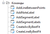 На следующем чертеже приведен пример коллекции команд в дереве вкладки "Параметры":