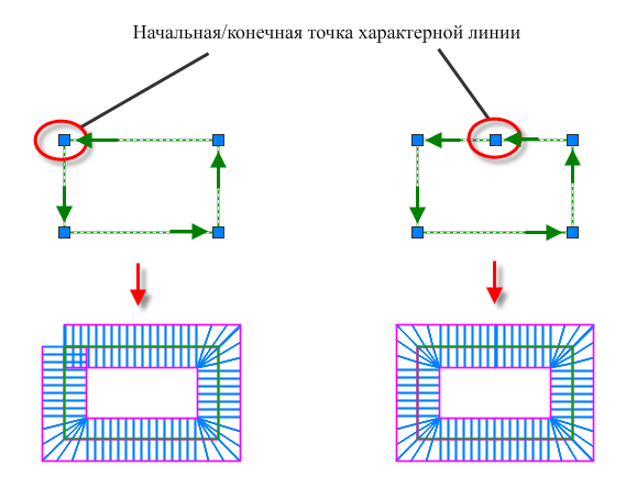 Для устранения этой проблемы рекомендуется построить характерную линию таким образом, чтобы она начиналась и заканчивалась за пределами угла, как показано на рисунке справа.