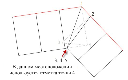 Точки 3 и 4 перемещены в местоположение точки 5, а в качестве отметки в этом местоположении используется отметка точки 4. Положение и отметки точек 1 и 2 остаются неизменными.
