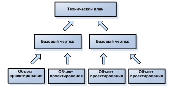 Независимо от структуры проекта рекомендуется размещать каждый объект проектирования, например каждую трассу и каждую поверхность, на отдельном чертеже. В процессе проектирования на базовых чертежах создаются ссылки на эти объекты. При подготовке окончательных планов строительства и выходных чертежей используются как ссылки на объекты, так и ссылки на чертежи.