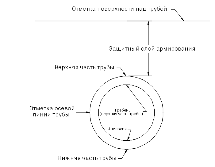Отметка осевой линии трубы. Высотная отметка осевой линии трубы.