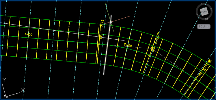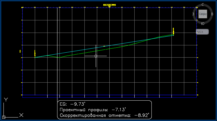 Отметка проектного профиля для выбранного пикета. Отметка проектного профиля для области коридора, используемого при реконструкции, определяется вертикальной базовой линией, которая была назначена коридору в свойствах коридора в процессе его создания.