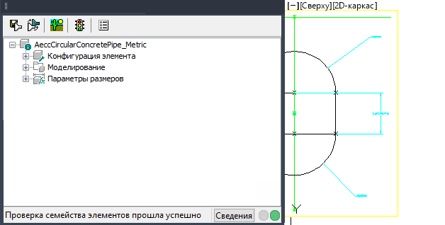 Каждая часть содержимого соответствует какому-либо семейству элементов, такому как бетонная труба, гибкая металлическая труба и бетонная эллиптическая водопропускная труба. Каждое семейство элементов содержит коллекцию размеров элементов, составляющих это семейство. Например, в семействе бетонных труб имеется набор заранее заданных размеров, которые возможно назначить данному элементу. Конструктор элементов дает возможность создавать и изменять размеры семейств элементов, а также создавать и изменять размеры отдельных элементов.