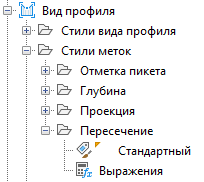 В объектах пересечений используются стили меток пересечений на виде профиля.